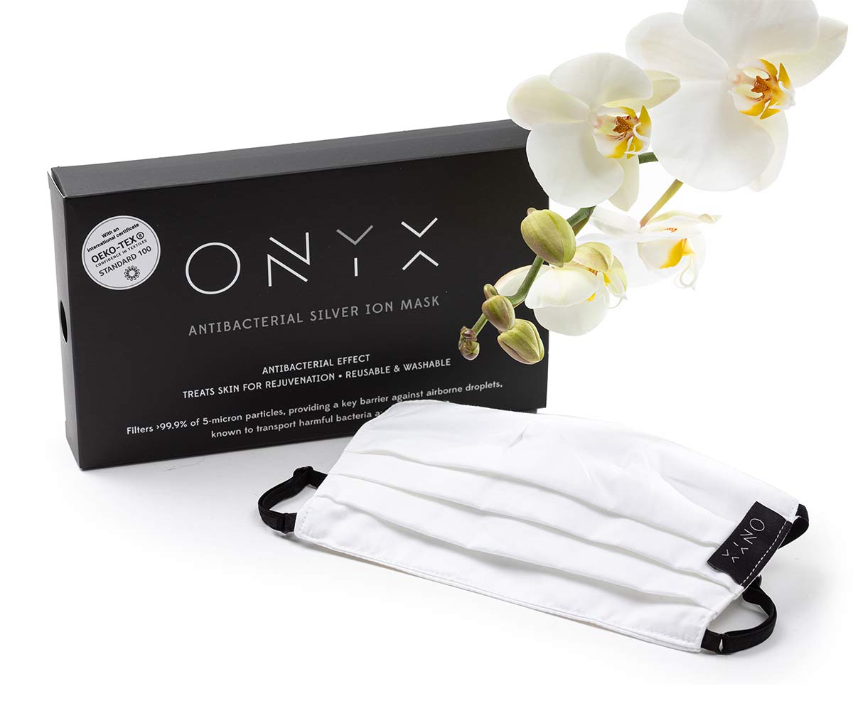 מסכת הפנים של ONYX עשויה מ-100% כותנה טבעית ומועשרת ביוני כסף הידועים כחומר אנטי-בקטריאלי, אנטי- ויראלי ואנטי-פונגיצידי*. כמו כן, המסכה הינה רב פעמית ועמידה לכביסות ושימוש חוזר, ולכן ידידותית לסביבה ואינה מזהמת כמו מסכות חד פעמיות.